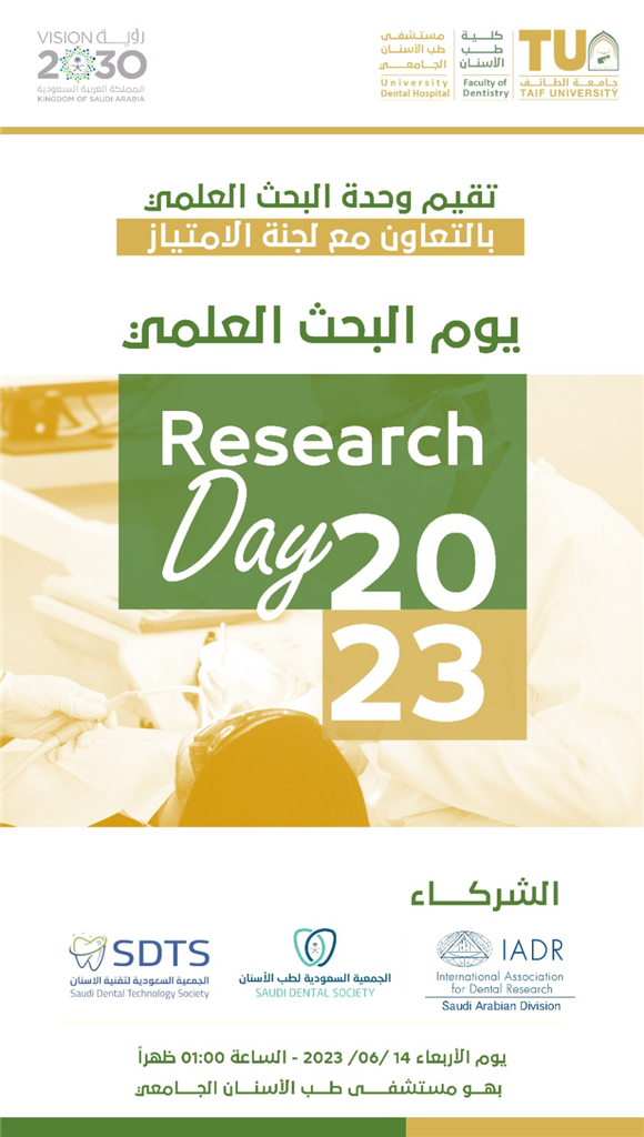 شاركت الجمعية السعودية لتقنية الأسنان في فعاليات يوم البحث العلمي 2023 لكلية طب الاسنان بجامعة الطائف